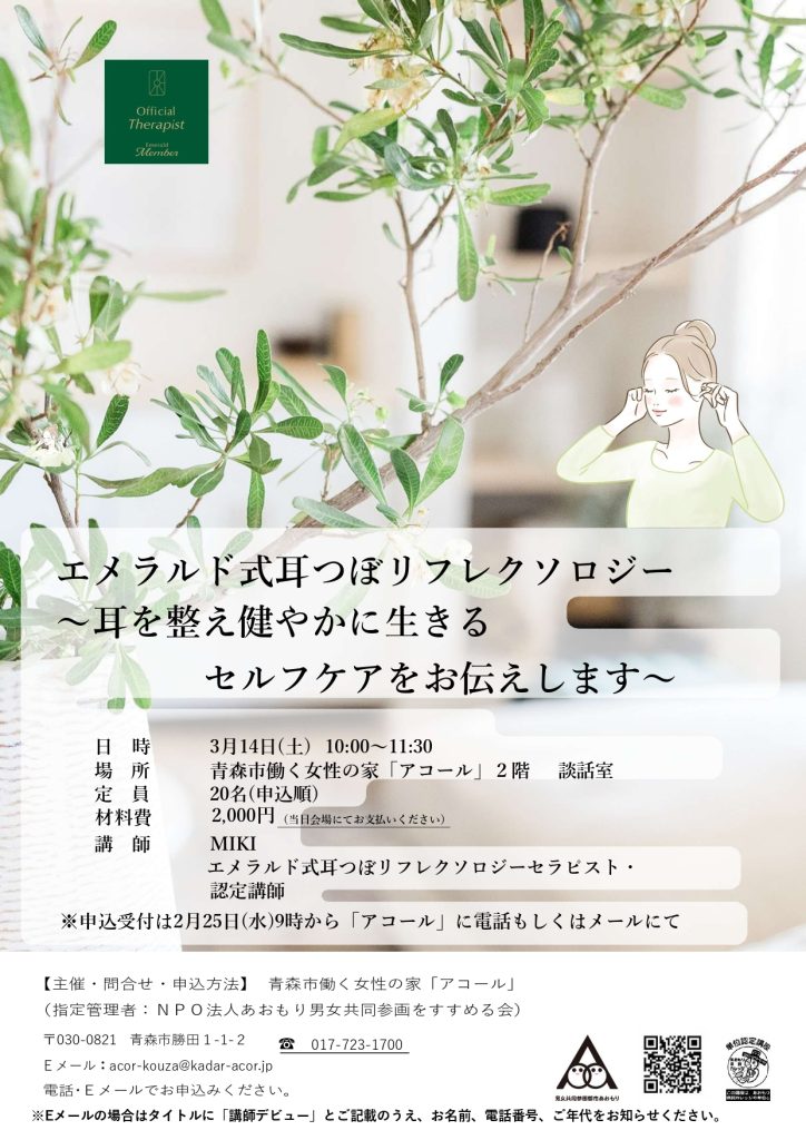 講師デビュー応援講座「エメラルド式耳つぼリフレクソロジー」~耳を整え健やかに生きるセルフケアをお伝えします~ を開催します!
